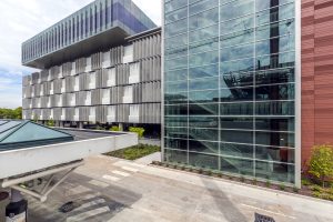 Helping the building achieve LEED Gold, Kawneer’s Versoleil® SunShades were utilized to provide the building shading. Depending on the time of day and location of the sun, the Versoleil® SunShades help reduce solar glare and heat gain for all-day occupant comfort, achieving a 41% energy cost savings for the building.
